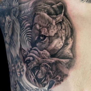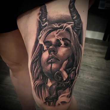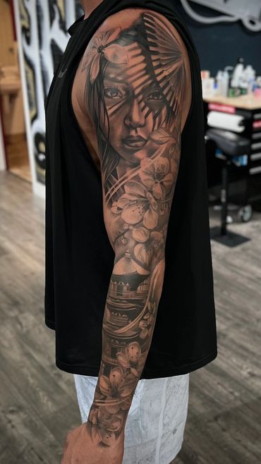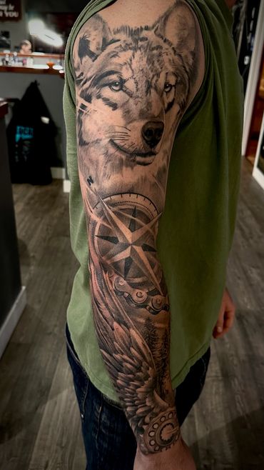 A full day session is approximately 8 to 12 hours. Nolan will sit down with you, talk ideas, look up some references, and build your tattoo virtually so you can see exactly how it will look on your body. Next Nolan will make a stencil which typically takes about an hour so that is the perfect time for you to grab some lunch and prepare yourself for the session. Typically in a full day Nolan will finish 5+ hours of tattooing.